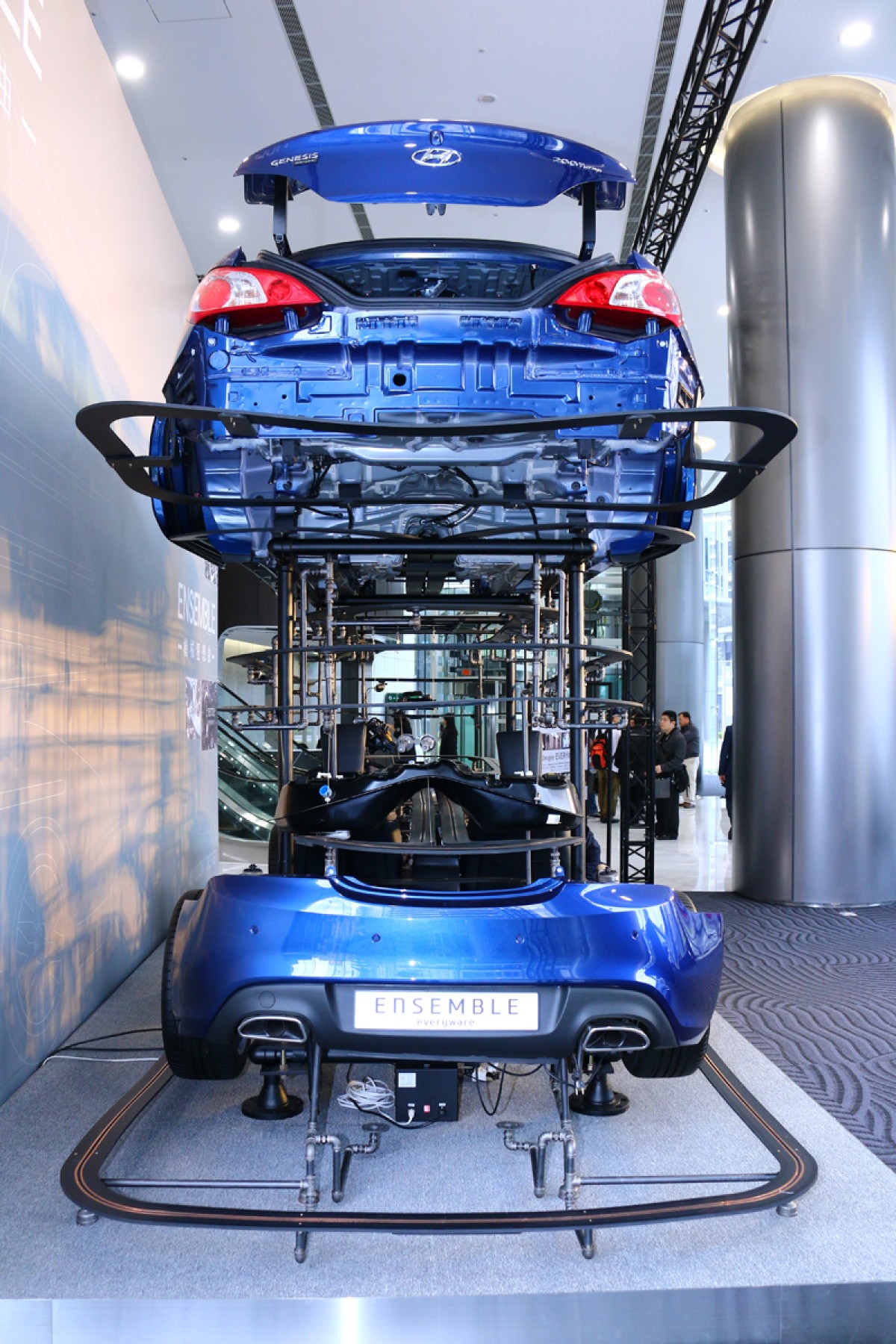 總經理魏國志表示,將Hyundai 設計精髓透過三次元陳列重要機件,讓民眾藉由巧妙安置、配有鏡頭的軌道車直觀欣賞。創作團隊在如此巨大的裝置藝術品中傳遞無比細膩的影像,運用宏觀、微觀兩種截然不同的概念交互合奏出“Ensemble 機械狂想曲”,也藉此揭露Hyundai極致造車工藝美學,讓大家能親眼見識到Hyundai汽車在設計外裝或內裝的細膩巧功。