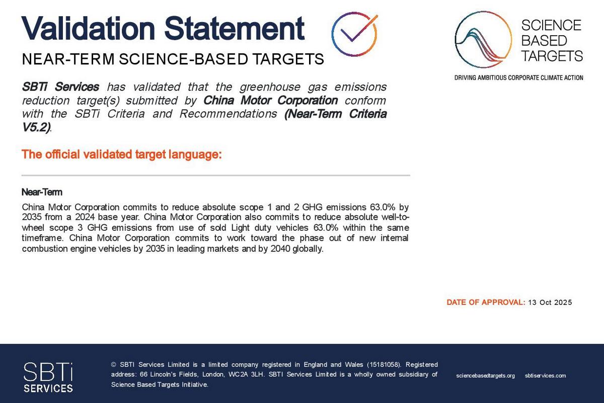中華汽車繼2023年發布「2050年淨零宣言」的目標後,再次展現重視淨零願景與具體回應《巴黎協定》控制全球平均升溫1.5℃內的目標,並具體承諾以2024年為基準年,至2035年製程直接排放的(範疇一)與能源間接排放的(範疇二)加總碳排量減少63%;以及(範疇三)類別11「售出產品的使用」碳排量減少63%。