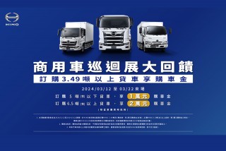 - 汰舊換新Hino加碼3萬元:符合汰舊換新政府減徵貨物稅5萬者,10/5-12/31下訂購買五噸車者,HINO加碼再折3萬元。