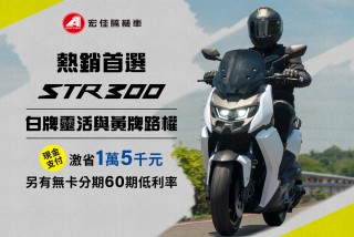 宏佳騰旗艦黃牌新指標STR結合智慧科技與打破市場框架的全新騎乘思維,建議售價147,800元,搭配政府最高補助6,300元,最低141,500元起(不含牌險),9月30日前至全台各經銷門市試乘,還可參加「試乘週週抽」活動,抽獎資格還可累計,越早參加中獎機率越高,歡迎喜愛宏佳騰機車的您親臨門市體驗新世代機車中最具冒險性格的STR車款!
