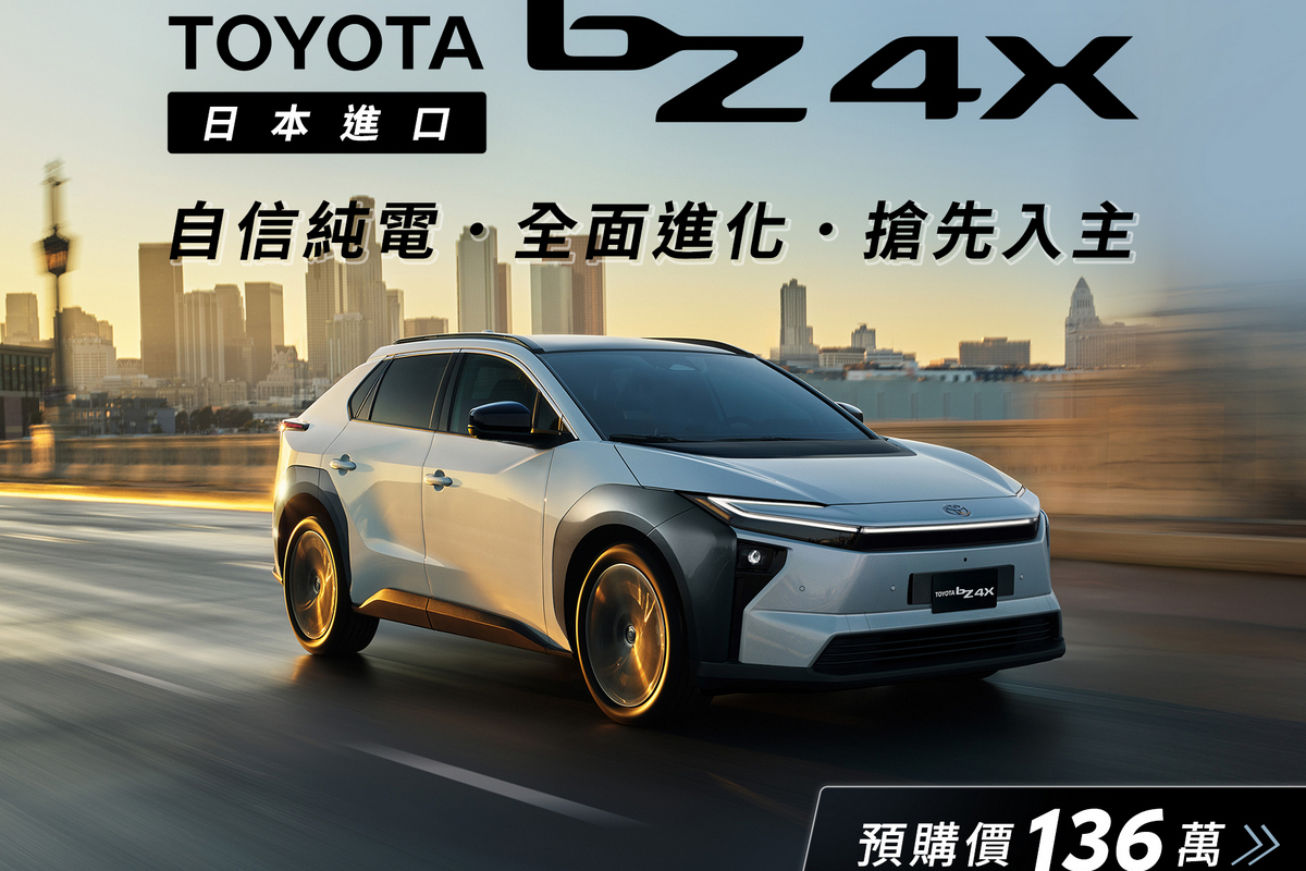 正式上市前全新進化純電休旅bZ4X將以預購價新台幣136萬元註3接受顧客預先下訂(多退少不補)。喜愛bZ4X的消費者,可直接洽詢全台Toyota經銷商據點,詢問預購相關事宜。相關資訊亦可上Toyota 網站查詢:https://www.toyota.com.tw/event/202510_bZ4X_preorder/