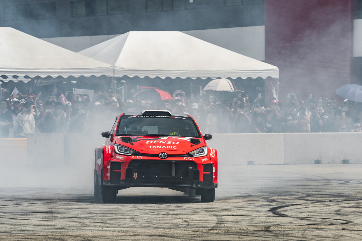 週末活動的重頭戲─Rookie Racing 特別表演,由車手平川真子揭開序幕,駕駛 GR86 帥氣登場,令人驚喜的是,副駕上坐著的竟是和泰汽車蘇純興總經理;緊接著豐田章男會長 Morizo 以 GR Yaris Rally2 火力全開現身,急加速、重煞與過彎一氣呵成,每一次漂移與回油,都引來滿場觀眾起立歡呼,而坐在會長副駕的則是和泰汽車黃南光董事長。兩位嘉賓坐鎮副駕的畫面成為全場最熱議亮點,觀眾掌聲與歡呼此起彼落。