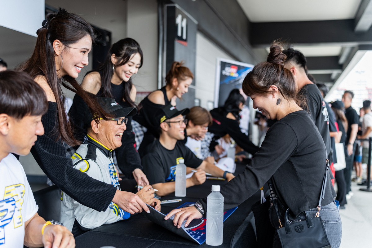 而周日午後的Rookie Racing車手簽名會,名額開放即秒殺,現場排隊人龍一路延伸,幸運的100位粉絲於賽道旁與豐田章男會長Morizo及Rookie Racing五位車手近距離互動,Pit Lane霎時化作舞台,熱度直達頂點。