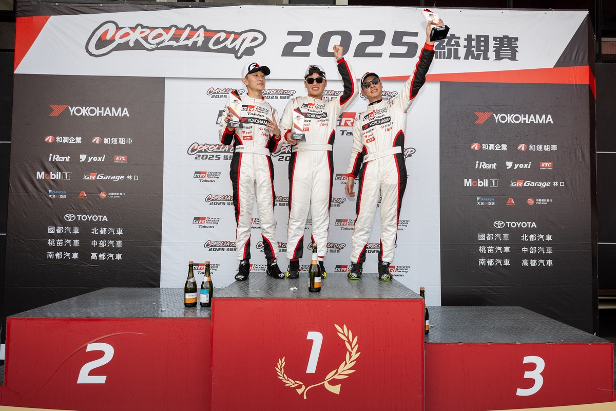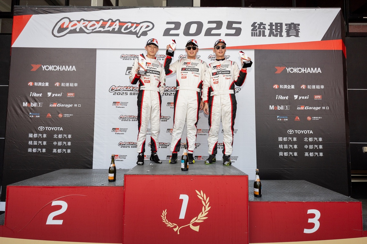 Corolla Cup 2025統規賽秉持「統一規格、公平競技」精神,以市售車Corolla Altis GR SPORT為基礎打造比賽用車,採三站九回合積分制。最終站三回合節奏緊湊、攻防頻仍,選手們把握最後機會衝出佳績,過彎與超車等經典鏡頭成為年度話題。第一回合,周翼騰自竿位出發一路領先,再收20分並提前鎖定年度冠軍;首彎攻防激烈,原排位第三之陳柏邑掉出前段,楊博崴自第5位起步推進至第二,廖培鈞穩居第三完賽。第二回合,周翼騰乘勝追擊完成連莊,楊博崴及廖培鈞保持發車順序以第二及第三名完賽;而中段班謝坤廷、陳柏邑、林永程、程志熙則多度貼身纏鬥。第三回合採第二回合前六名倒序起跑,首位發車的謝坤廷把握節奏奪下第三回合冠軍,林永程由第7位發車積極推進獲第三回合亞軍,程志熙自第8位發車於第7圈完成關鍵超越收下第三回合季軍。