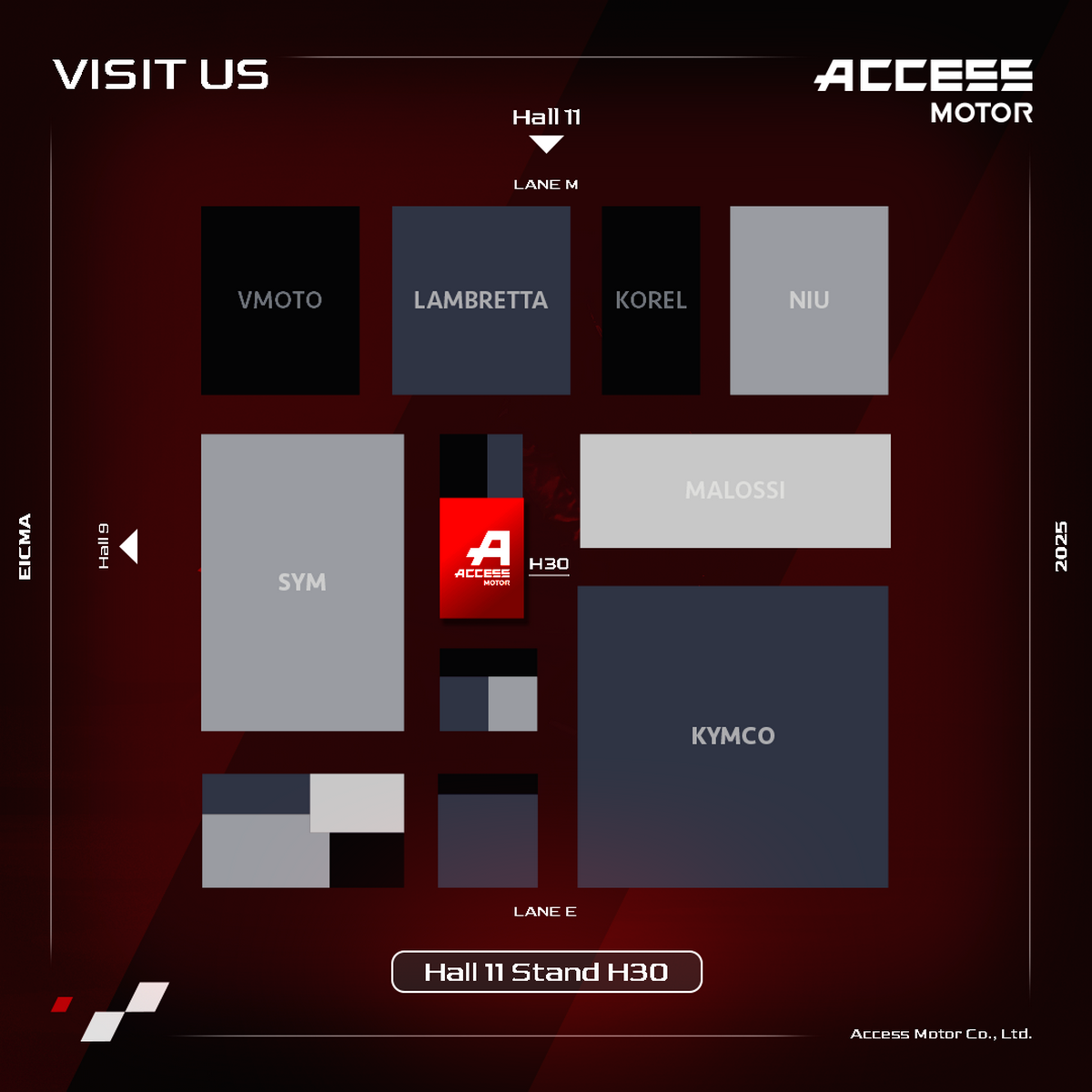 Access Motor 將以「運動性能 × 玩樂精神」為主題亮相 Hall 11, Stand H30,與鄰近展區的 SYM 與 KYMCO 共同展出。台灣品牌同場呈現,展現台灣交通工具產業在全球市場的創新實力與設計能量。