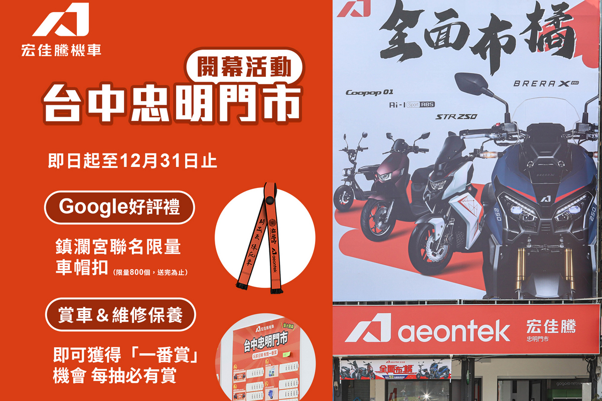 宏佳騰以 「全面布橘 油電新進擊」 作為新時代宣言,象徵品牌在油電並行的浪潮中持續突破框架,於各產品線積極推進創新,為消費者帶來更完整且多樣化的移動選擇。宏佳騰台中直營門市採用全新品牌識別打造,外觀簡潔俐落,室內採開放式格局與明亮氛圍,營造兼具科技感與舒適感的賞車空間。作為品牌官方示範據點,台中忠明門市具備以下四大特色,提供消費者安心且專業的服務體驗: