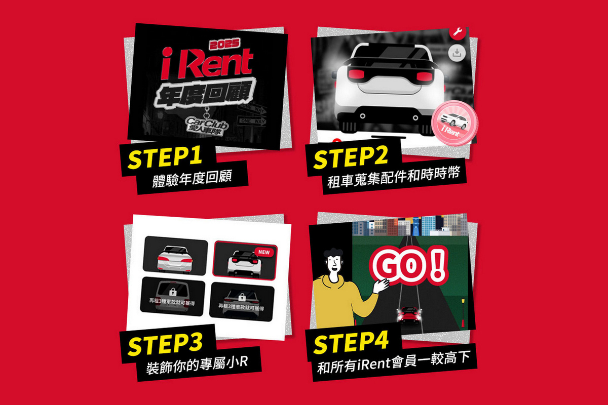 今年iRent特別推出「打造夢幻iRent」遊戲,會員與iRent的美好回憶,將依租車次數、里程累積、解鎖城市等各項任務的完成度,自動轉換為「夢幻iRent」的各式配件,包含:車款外型、車燈樣式、車身顏色/紋路、街景背景、尾翼與特殊裝飾,可在遊戲內打造獨一無二的專屬夢幻車,活動除認列2025年1月1日至2025年11月30日的租車紀錄外,會員可持續累積紀錄至2026年2月28日,為個人的「夢幻iRent」升級性能、新增酷炫配件。