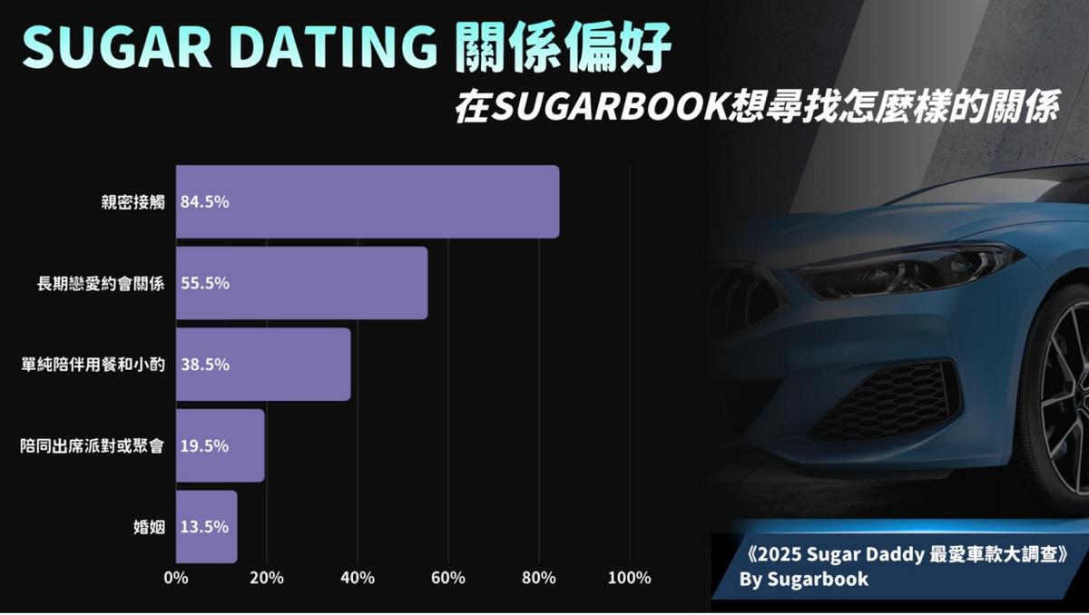 這份調查不僅揭開了台灣 Sugar Daddy 車庫的神秘面紗,更透視了成功男性在社經地位之外的多元面貌,看見不同年齡層、職業領域的男性渴望被理解、尋求真誠陪伴的需求。Sugarbook 這類高端成人交友平台所連結的不只是人與人之間的距離,更是對於被理解的渴望、被陪伴的情感支持,而能在茫茫人海中遇見對的人,進而延伸發展「互惠式約會關係」的可能。