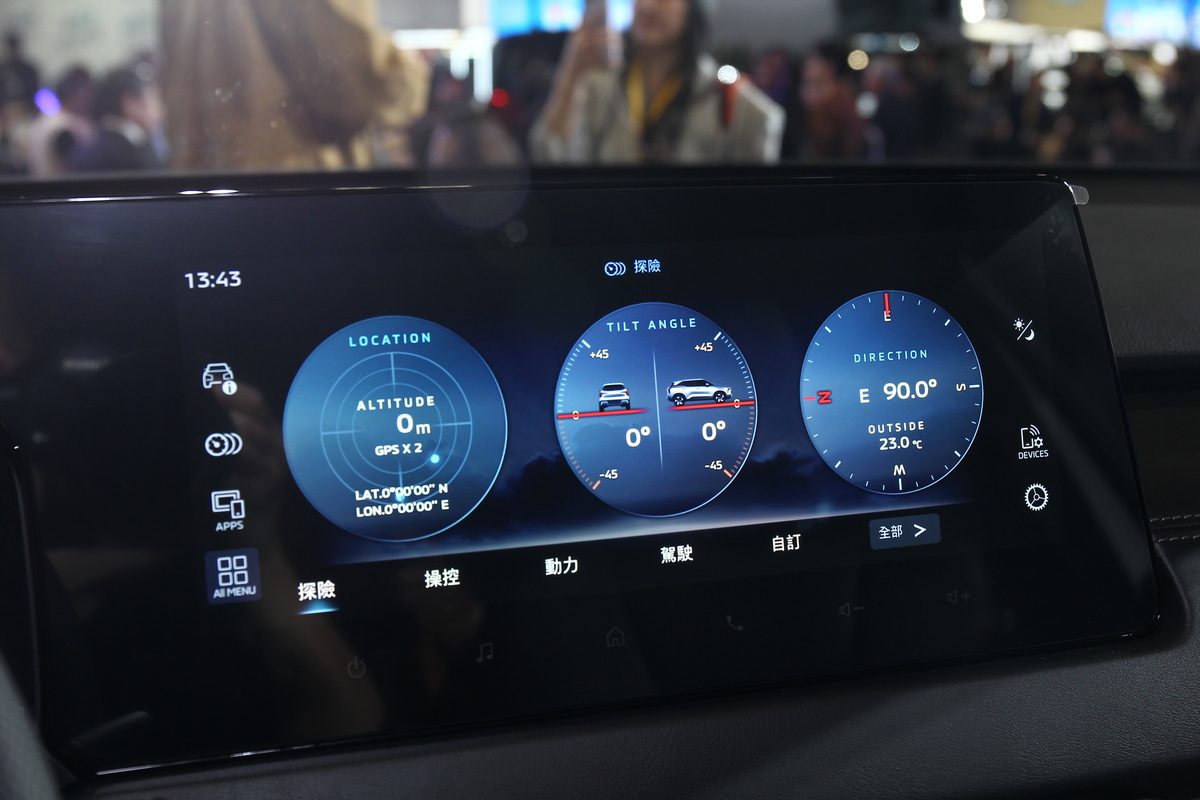 XForce 採雙螢幕科技座艙設計,整合 10.25 吋高解析度數位儀錶 與 12.3 吋中控顯示系統,提供清晰易讀的行車資訊與多媒體操作介面,並支援無線 Apple CarPlay與Android Auto智慧型手機連結功能,讓導航、通訊與娛樂操作更直覺流暢,而12.3吋中控螢幕內建經典的三環錶畫面,能顯示車身傾角、海拔高度等即時地形資訊。