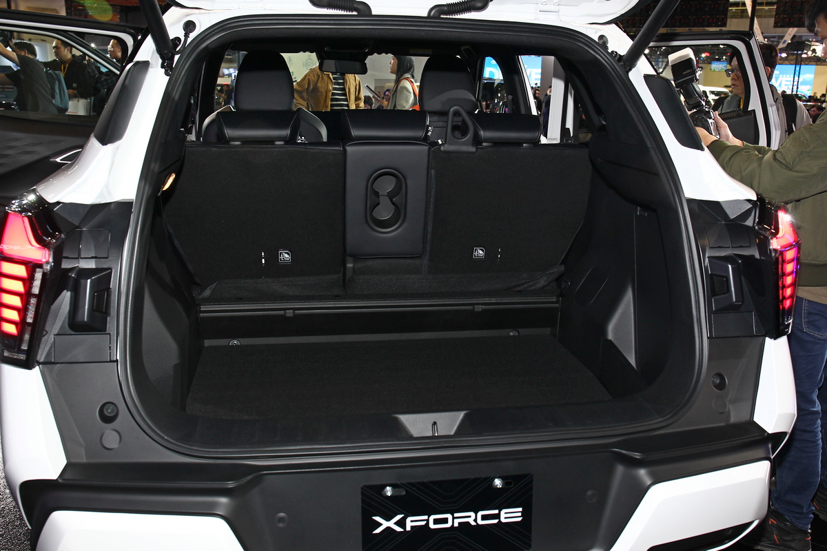 XForce以日常實用為核心,打造寬敞且高機能性的車室空間,車長 4,390mm、車寬1,810mm、車高1,660mm、軸距2,650mm,車室內部擁有優異的頭部與膝部空間表現,後座椅背支援4/2/4分離傾倒,能依照不同載物需求靈活調整行李箱空間,兼顧家庭出遊與日常採買。