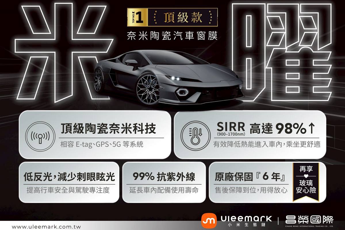 現。Uleemark 隔熱紙系列(米曜 MY/米酷 MK)皆採用非金屬的頂級奈米陶瓷技術,兼顧隔熱效能與訊號穩定性。