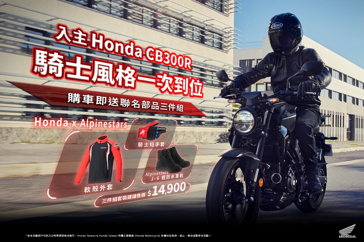 訂購CB300R即送Alpinestars聯名三件騎乘裝備組