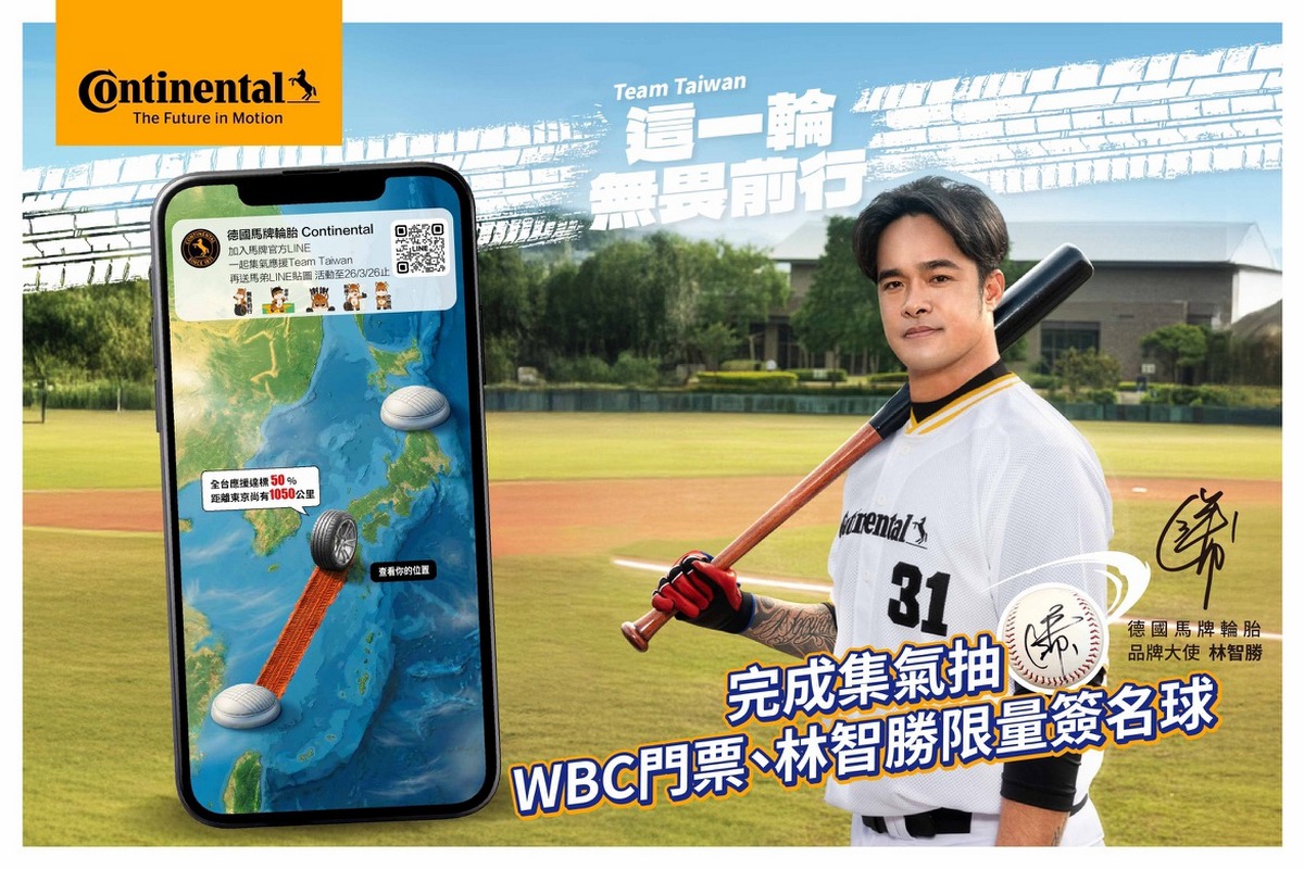 活動期間除抽出 2026 WBC東京分組預賽門票與新台幣30,000元旅遊金,還推出馬牌輪胎限量周邊馬弟毛毯及「大師兄」林智勝限量簽名球,為應援熱度再加碼。