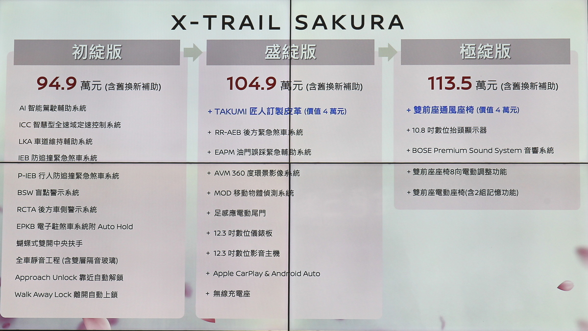 註1:「X-Trail Sakura 限時優惠」專案相關說明: