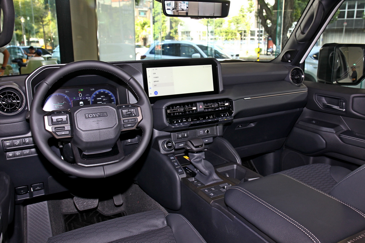 在座艙設計上,Land Cruiser採水平設計語彙,提供開闊駕駛視野,並依實際操作情境配置大量實體按鍵,兼顧便利與直覺操作性。配備12.3吋數位儀表、中控螢幕與抬頭顯示器,支援無線Apple CarPlay與Android Auto,越野操作更輕鬆就手。同時升級多項豪華配備,如一鍵式開啟全景天窗、14支JBL環繞音響系統及前後皮質通風加熱座椅等。在安全防護科技上,搭載最新Toyota Safety Sense 3.0主動安全系統、8具SRS氣囊及E-Mirror電子後視鏡(註1),全方位守護乘員安全。