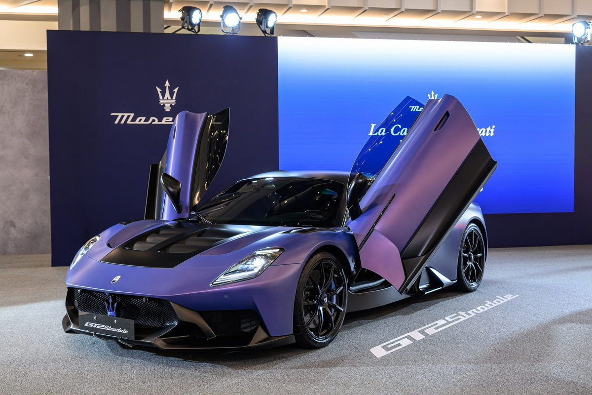 展示主題聚焦 Nettuno × Folgore 雙重高性能動力單元,由首次於大眾場合亮相的旗艦道路版賽車 GT2 Stradale 領軍,以源自賽道的空氣力學設計、極致輕量化結構與搭載Nettuno 海王星 3.0L V6 雙渦輪增壓引擎,展現三叉戟最純粹的性能。同步展出 GranCabrio Trofeo 以義式 GT 優雅比例與強悍動能詮釋義式壯遊精神和性能駕馭的和諧平衡。展區亦展示純電跑旅 Grecale Folgore,以電能科技與義式設計詮釋 Maserati 邁向純電世代的嶄新篇章。展示期間為:11/24 (一) - 11/28 (五) ; 12/1 (一) - 12/4 (四)。