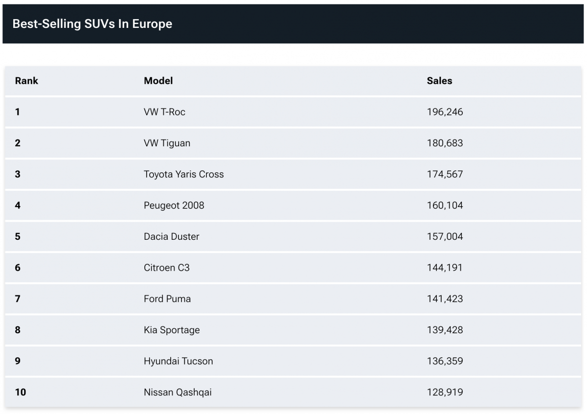 在一片SUV浪潮下,歐洲銷售冠軍依舊是一輛掀背車,由便宜又大碗的Dacia Sandero拿下。