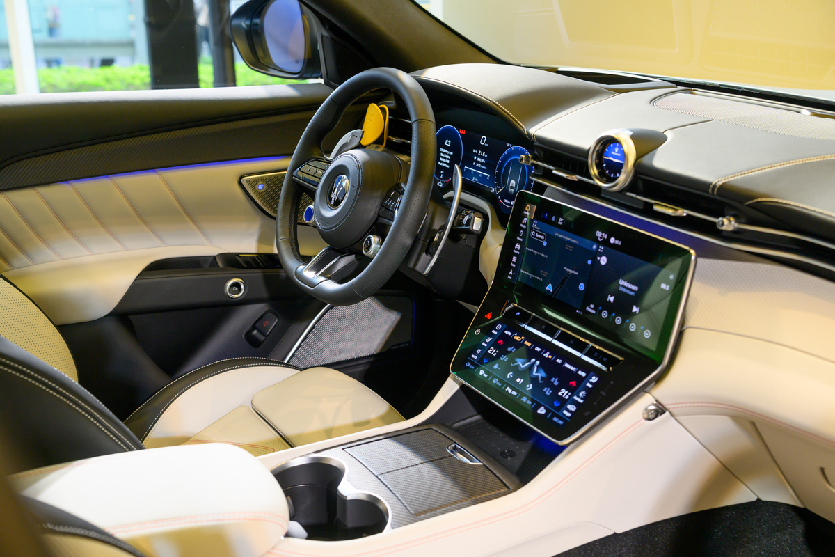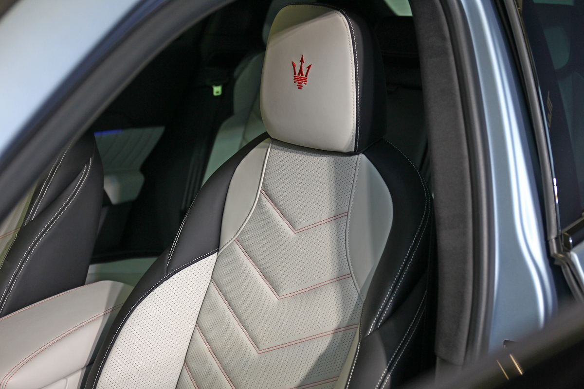 座艙鋪陳為臺灣市場首見的 Fuoriserie 內裝配置,冰色與黑色雙色皮革交織,搭配紅色頭枕刺繡與縫線細節,在運動張力與奢雅質感之間取得平衡,呈現如高級訂製時裝般的層次與溫度。「 Grecale Trofeo Fuoriserie 季節特別版」營造如高級訂製時裝般的層次感與溫度。座椅皮革採用 Fuoriserie Sport Premium 皮質,前座搭配 14向電動加熱通風座椅與後座加熱座椅,與Sonus faber High Premium 21支揚聲器,在熱血駕馭與奢華舒適之間自由轉換,演繹動力與極致操控性能,展現當代高性能 SUV 的義式風範。