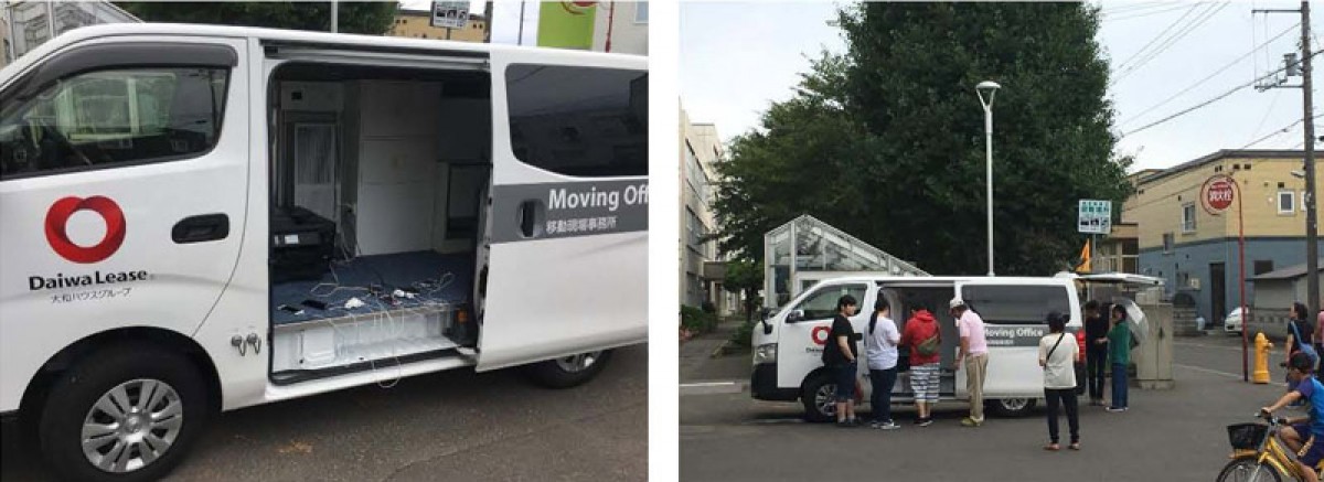「移動現場事務所」可以選擇以Toyota Hiacevan、Nissan NV200 Vanettevan及Nissan NV350 Caravan三款車型為基礎,配置了摺疊辦公桌椅、多功能收納儲物架、保險箱、室內空調、電源插座,小會議室等辦公室設備,並降低怠速時的噪音,除了提升車室舒適的辦公環境外,同時降低在車上辦公時車輛運轉的噪音對周邊環境的傷害。