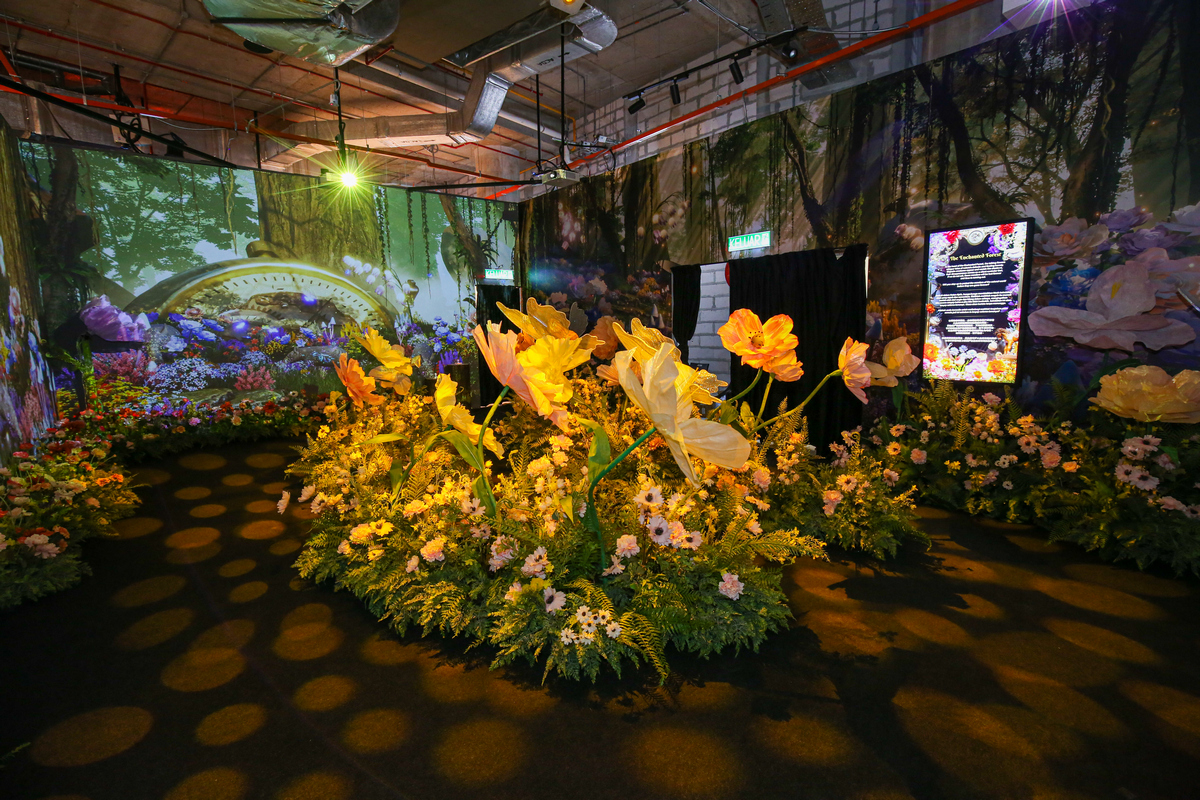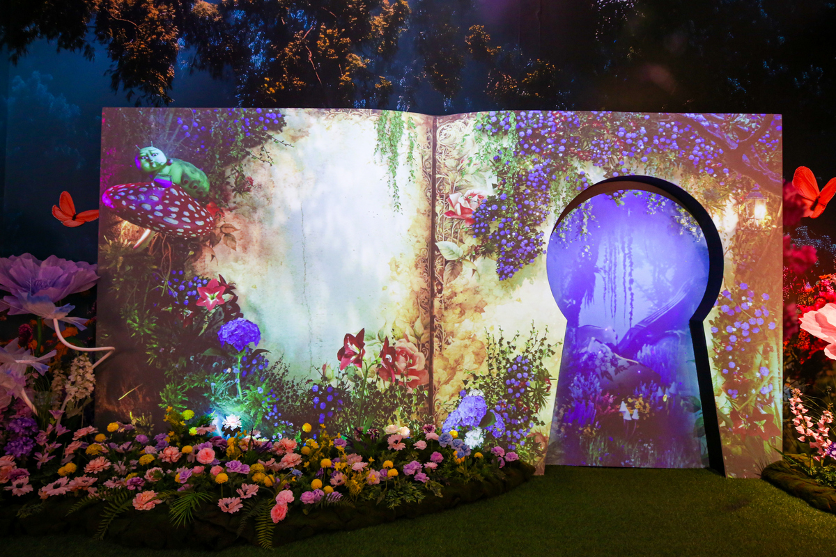 展場每個角落都美得如夢似幻,彷彿跌入真實仙境。從泡泡之境的流光幻影,到魔法森林的呢喃回聲;從紅心宮殿的鏡面試煉,到守護龍的甦醒—共十二大主題展區,觀眾將和愛麗絲一起經歷冒險。每一幕都隱喻人與自然的連結,提醒我們:仙境的消逝,不是魔法的消退,而是人類對環境的遺忘。