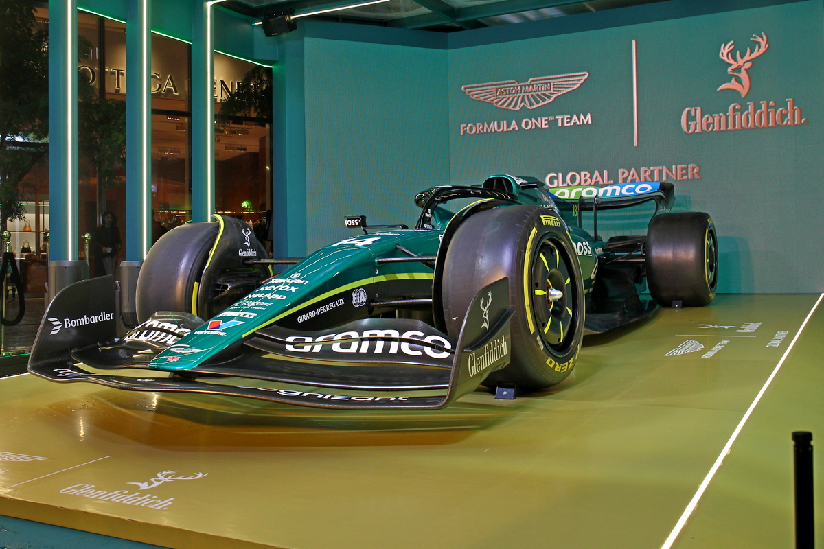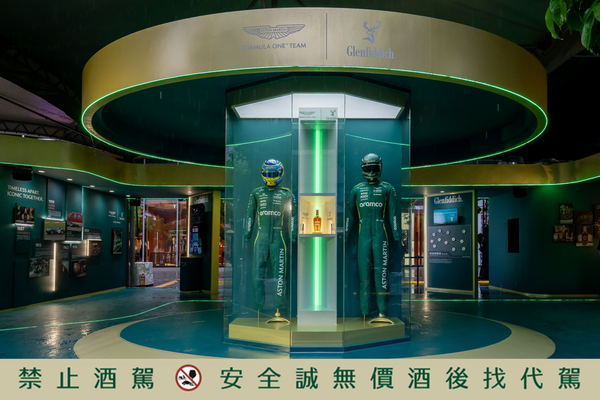 限量登場的「格蘭菲迪16年單一麥芽蘇格蘭威士忌Aston Martin Formula One® Team聯名款」,由首席調酒師Brian Kinsman以三種美國橡木桶熟成工法打造,凝聚時間的厚度與速度的精準。酒液以楓糖與蜂蜜揭開序曲,溫潤飽滿;中段綻放新鮮水果與奶油氣息,尾韻以細膩辛香延展,如同F1賽車手在彎道間以本能掌控瞬間張力——果斷、優雅、充滿節奏感。呼應這份對速度與工藝的共同執著,Aston Martin Formula One® Team Replica Car首度於台北實體登場。車體以1:1比例製作,完整重現碳纖維結構與空氣力學設計。同場亦展出兩位現役頂尖車手的實戰裝備,包括兩屆F1世界冠軍、以攻勢節奏聞名的傳奇名將Fernando Alonso;與以敏捷思維與專注節奏象徵新世代力量的Lance Stroll。兩套真實比例的賽車服與頭盔,精準復刻縫線細節,展現F1對完美的極致追求。
