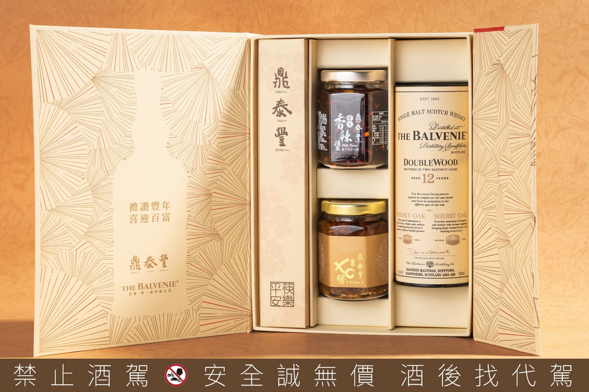 The Balvenie百富x鼎泰豐 豐年百富限量禮盒 禮盒內容: 百富12年雙桶單一麥芽威士忌 200ml乙瓶/干貝XO醬乙瓶/豐味香辣醬乙瓶/平安筷乙入 建議售價:$1,980 銷售通路:全台鼎泰豐門市 |