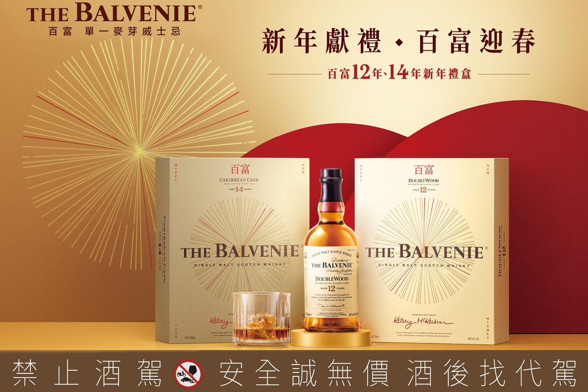 The Balvenie百富12年雙桶單一麥芽威士忌 新年限定禮盒 禮盒內容:百富12年雙桶單一麥芽威士忌乙瓶 / 威士忌水晶杯一只 聞香:融合香甜水果、Oloroso雪莉酒的香氣,與蜂蜜和香草味交互鋪陳。 口感:滑順芳醇,呈現出堅果的甜美、肉桂的辛辣,以及雪莉酒細緻的風味融合而成的美妙風味。 餘韻:悠長而豐富。 建議售價:$1,560 銷售通路:全台特選菸酒專賣店與私藏酒窖 |