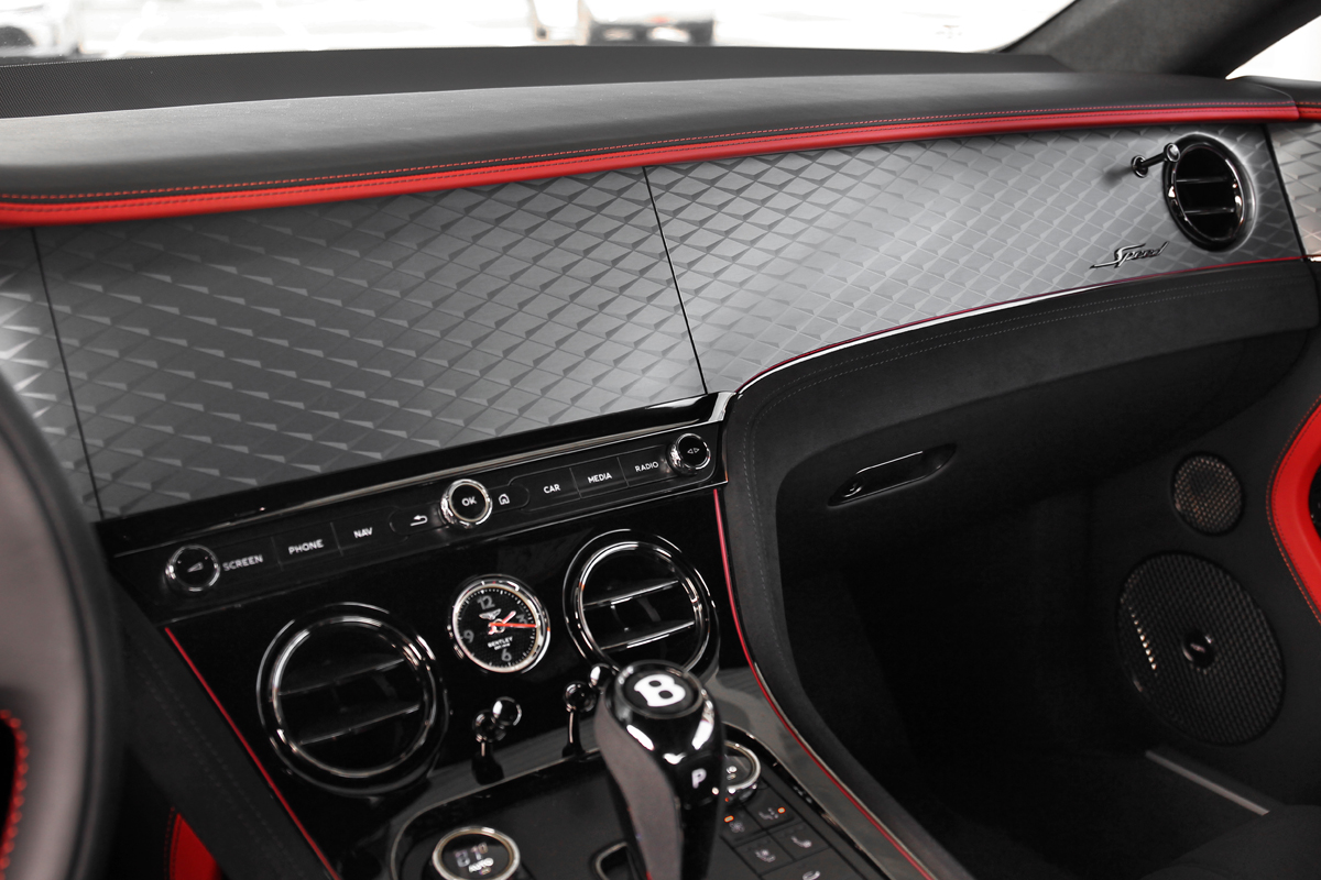 Continental GT Speed的高貴優雅不僅止於外型與動態,座艙格局也以英式豪華作為唯一目標,頂級皮革、麂皮與菱格紋飾板將奢華與年輕運動完美融合,紅色皮革線條更進一步彰顯Continental GT Speed的性能身分。數位儀表和12.3吋觸控螢幕在科技化時代滿足任何對於便利的需求,有別於各車廠千篇一律的大螢幕設計,Bentley提供三面翻轉螢幕選配,透過按鍵操作可切換成三環錶介面,此時座艙瞬間散發出古典氛圍,與此同時位在排檔兩側的實體按鍵也依序工整的排列。