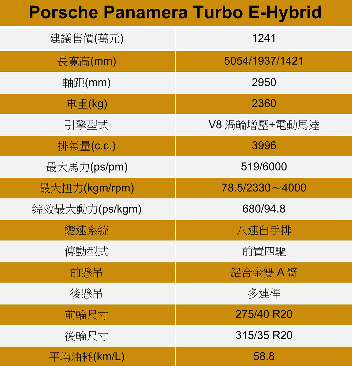 試駕的Panamera Turbo E-Hybrid在選配項目超過370萬元,倘若不想照單全選,建議必須要選Active Ride主動車高控制、後輪轉向、全景式天窗與後座娛樂系統,如此一來就能同時擁有如柔順版911的動態身手和舒適放鬆的後座環境。