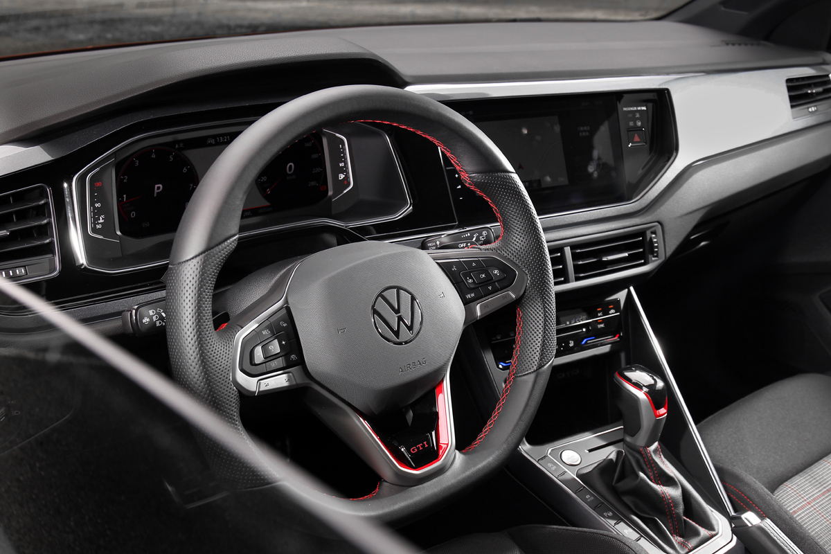 Polo GTI除動力與後懸吊及電控系統和Golf GTI相比有所不同外,座艙部分則配置GTI迷最喜愛的格紋跑車座椅,數位儀錶同樣為10.25吋,但中控螢幕則為9吋,不過無線Apple Carplay/Android Auto、IQ.Drive智能駕駛輔助系統等便利配備則一樣不缺。