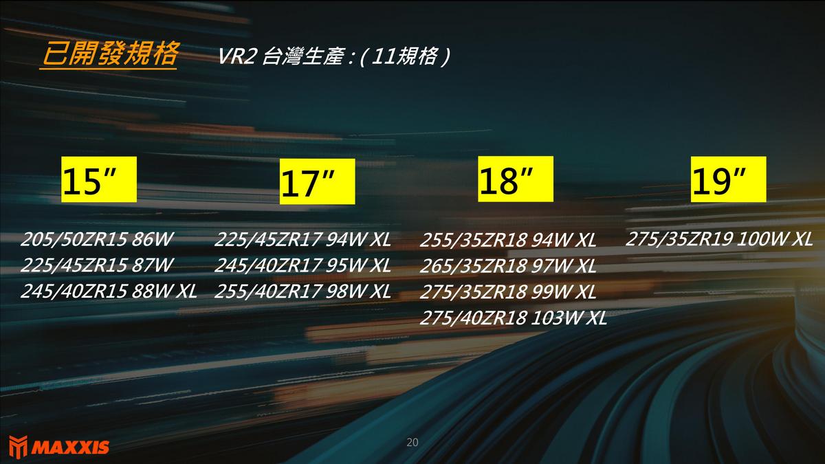 Maxxis VSEV+目前胎寬涵蓋235至275,尺寸則有提供18~21吋,適用於市場上Model 3、Model Y、iX1/iX2與Ioniq 5等電動車款,搭配VSEV胎款共計有31個規格供消費者選擇。VSEV+雖為電動車胎,但若是規格符合的燃油車也能裝配。
